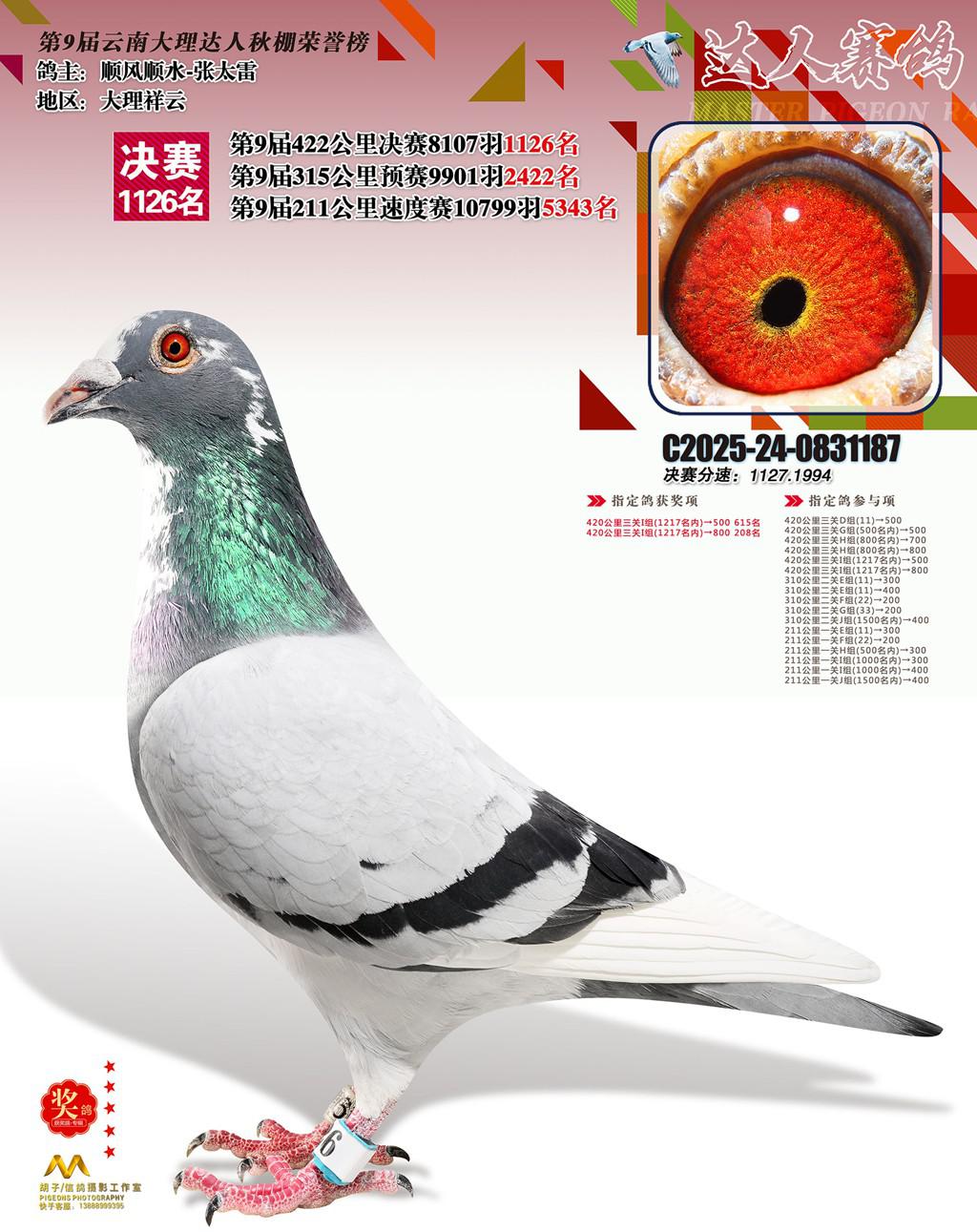 位置:云南大理巍山达人赛鸽中心2025获奖鸽展示\1126名