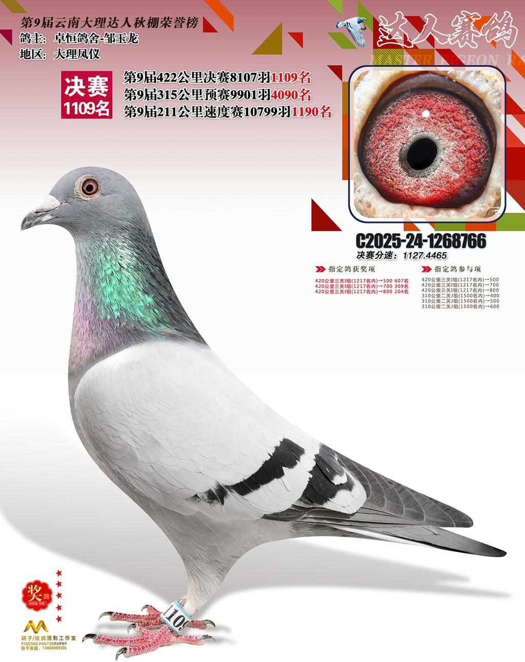 位置:云南大理巍山达人赛鸽中心2025获奖鸽展示\1109名