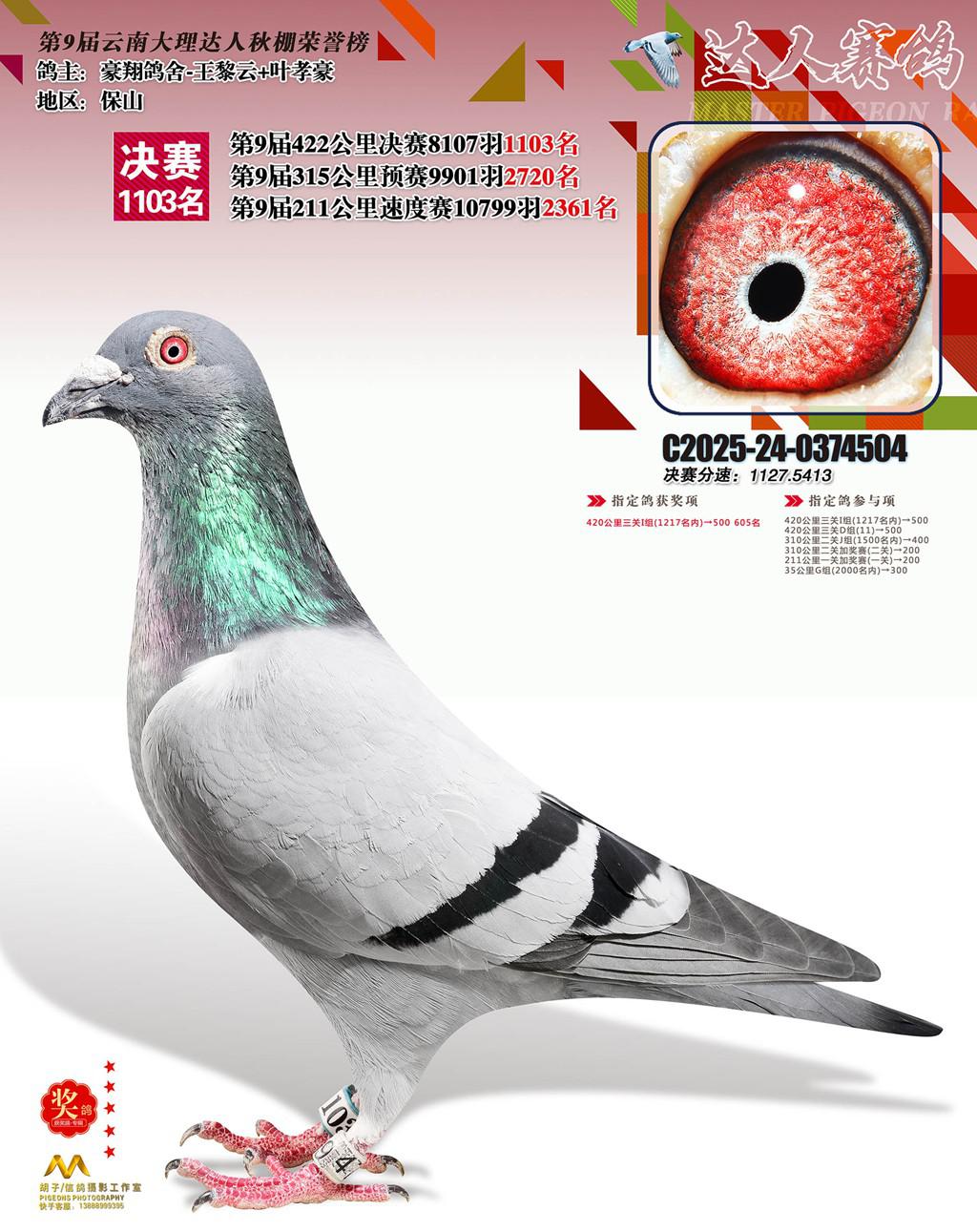 位置:云南大理巍山达人赛鸽中心2025获奖鸽展示\1103名