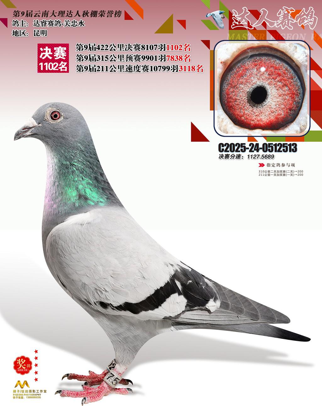 位置:云南大理巍山达人赛鸽中心2025获奖鸽展示\1102名