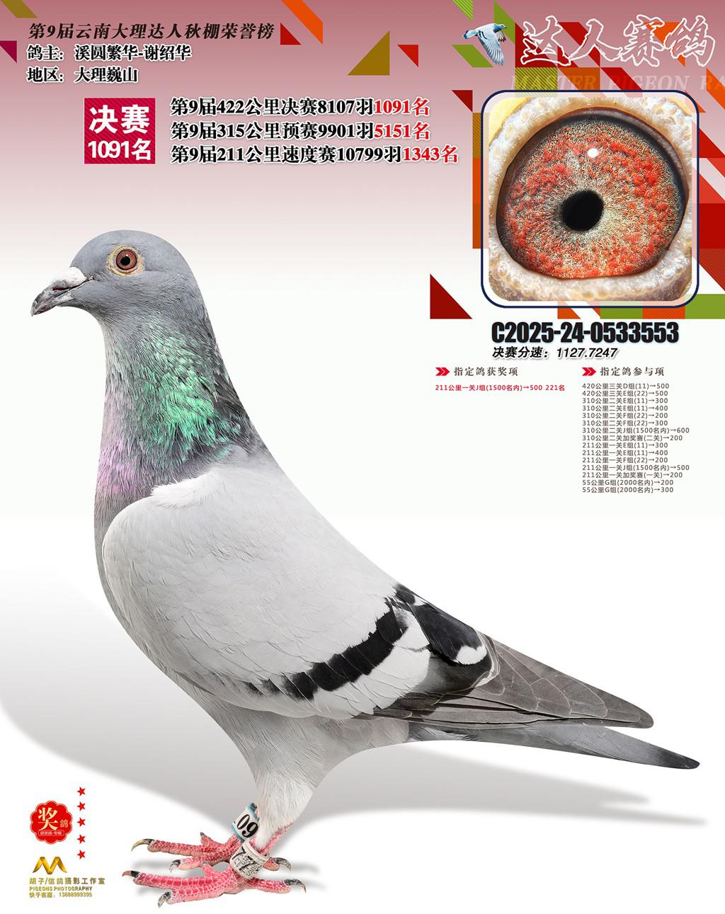 位置:云南大理巍山达人赛鸽中心2025获奖鸽展示\1091名