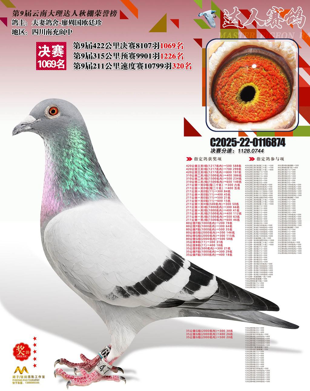 位置:云南大理巍山达人赛鸽中心2025获奖鸽展示\1069名