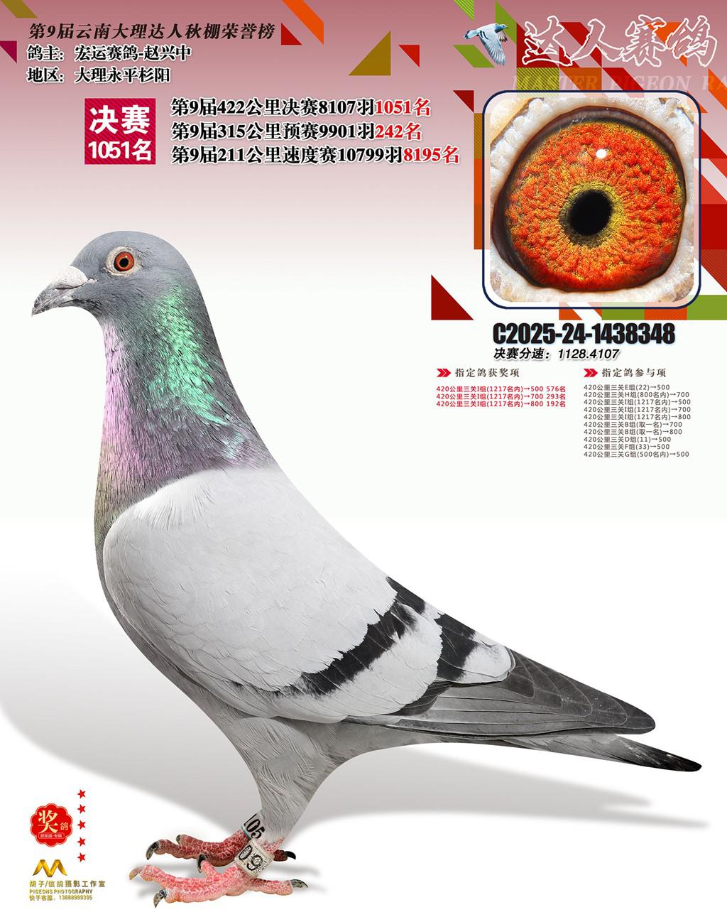 位置:云南大理巍山达人赛鸽中心2025获奖鸽展示\1051名