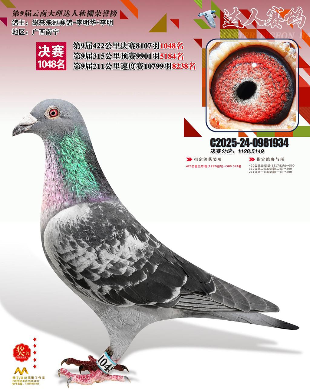 位置:云南大理巍山达人赛鸽中心2025获奖鸽展示\1048名