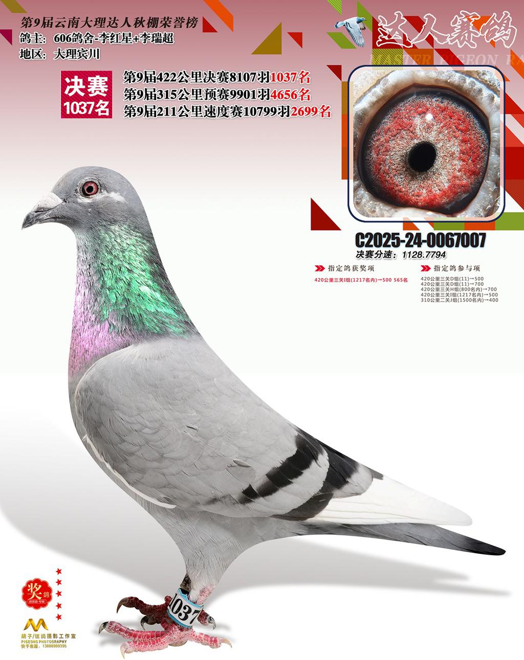 位置:云南大理巍山达人赛鸽中心2025获奖鸽展示\1037名