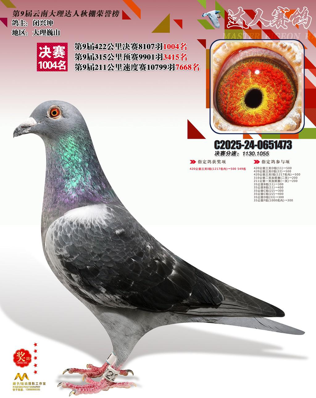 位置:云南大理巍山达人赛鸽中心2025获奖鸽展示\1004名