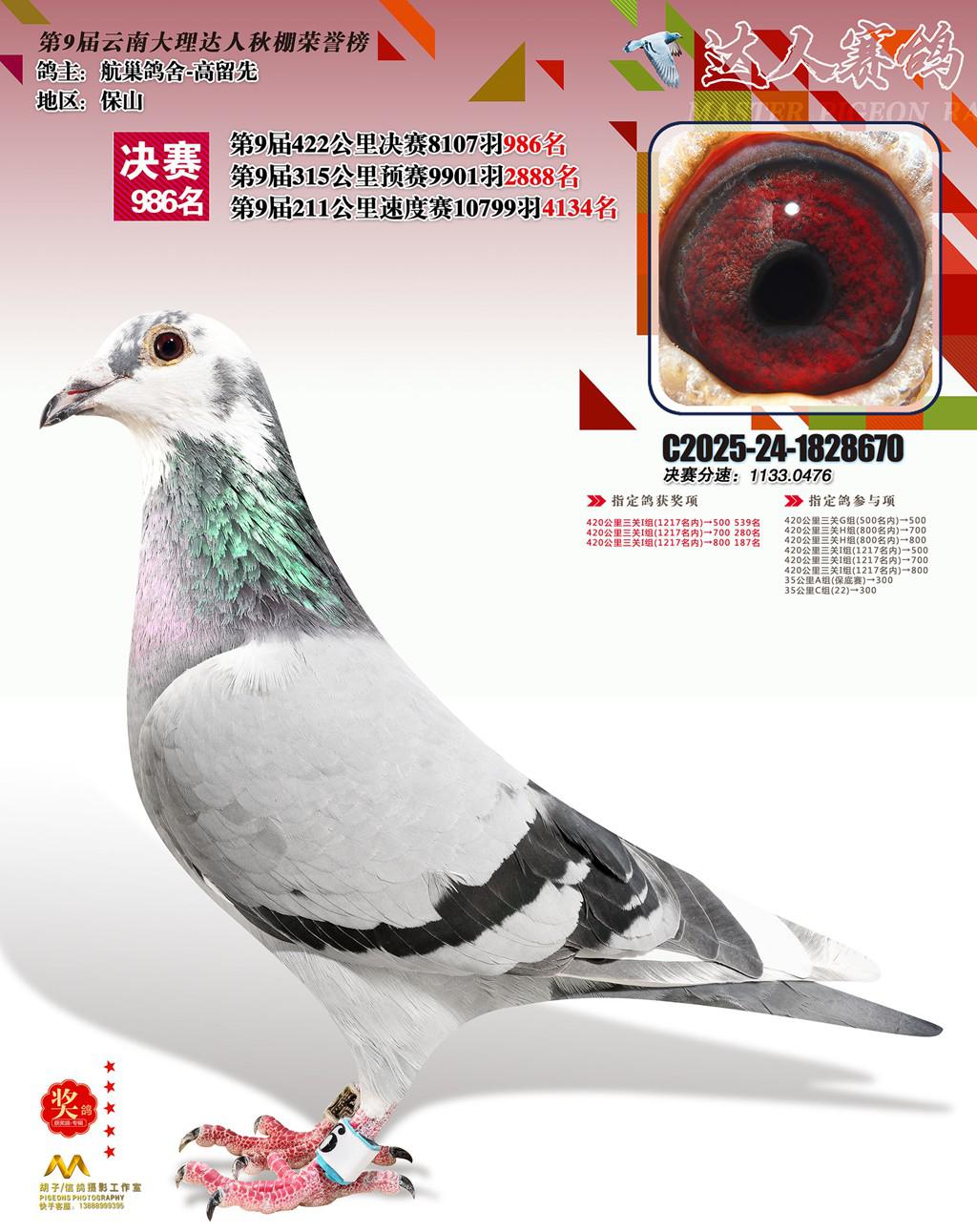 位置:云南大理巍山达人赛鸽中心2025获奖鸽展示\986名