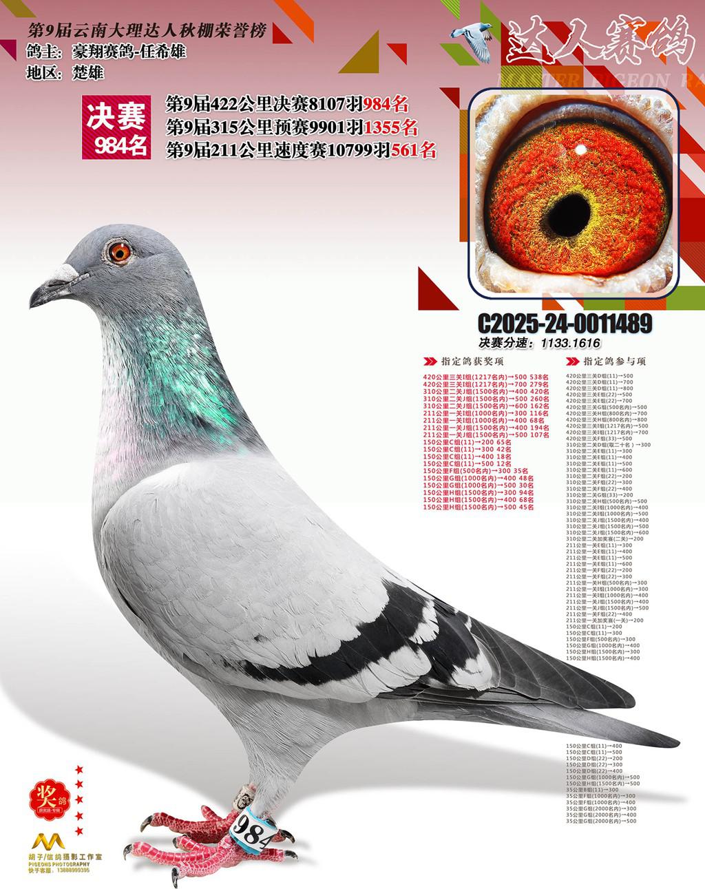 位置:云南大理巍山达人赛鸽中心2025获奖鸽展示\984名