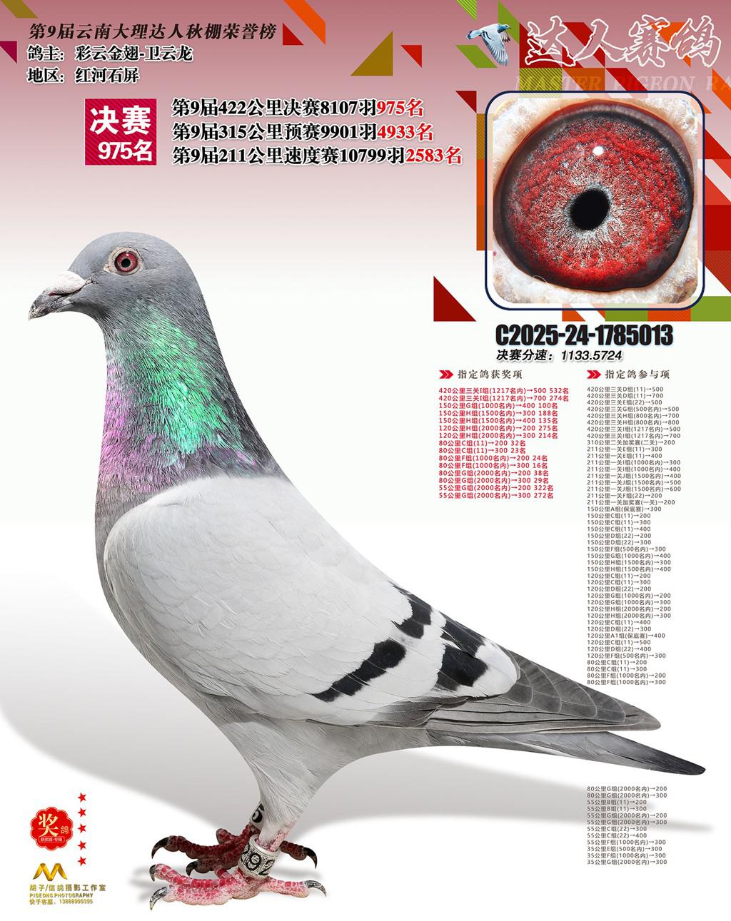 位置:云南大理巍山达人赛鸽中心2025获奖鸽展示\975名
