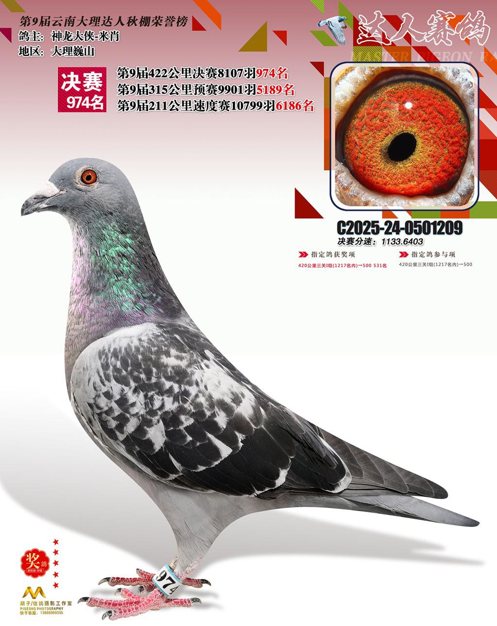 位置:云南大理巍山达人赛鸽中心2025获奖鸽展示\974名