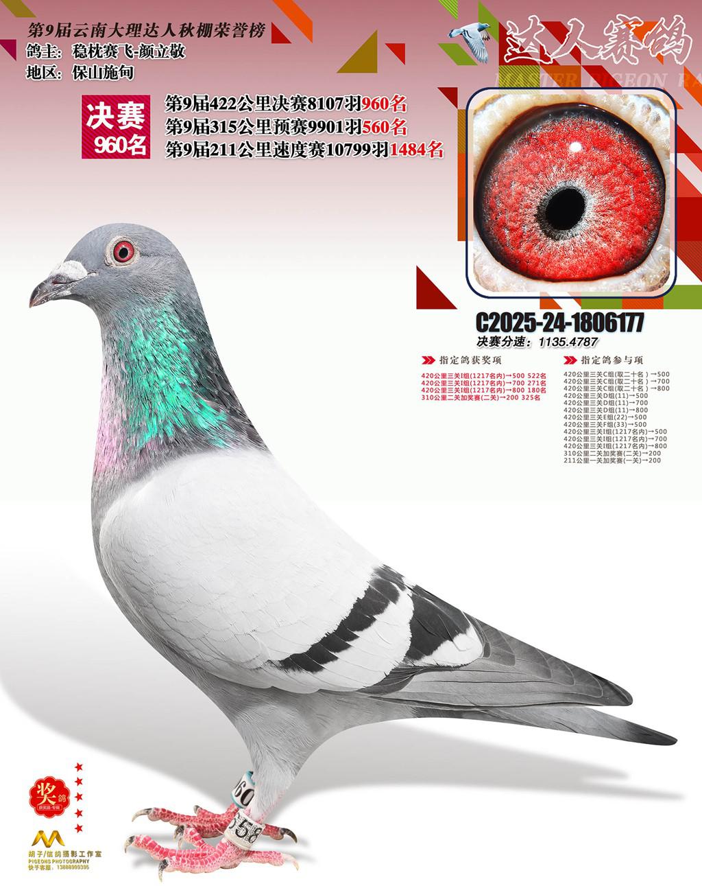 位置:云南大理巍山达人赛鸽中心2025获奖鸽展示\960名