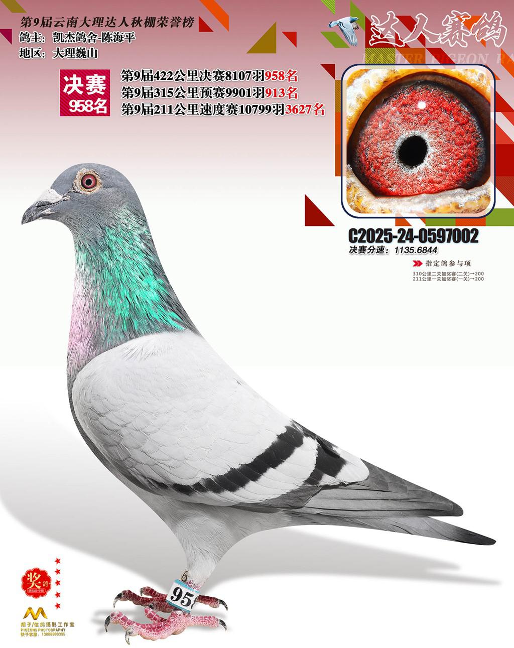 位置:云南大理巍山达人赛鸽中心2025获奖鸽展示\958名