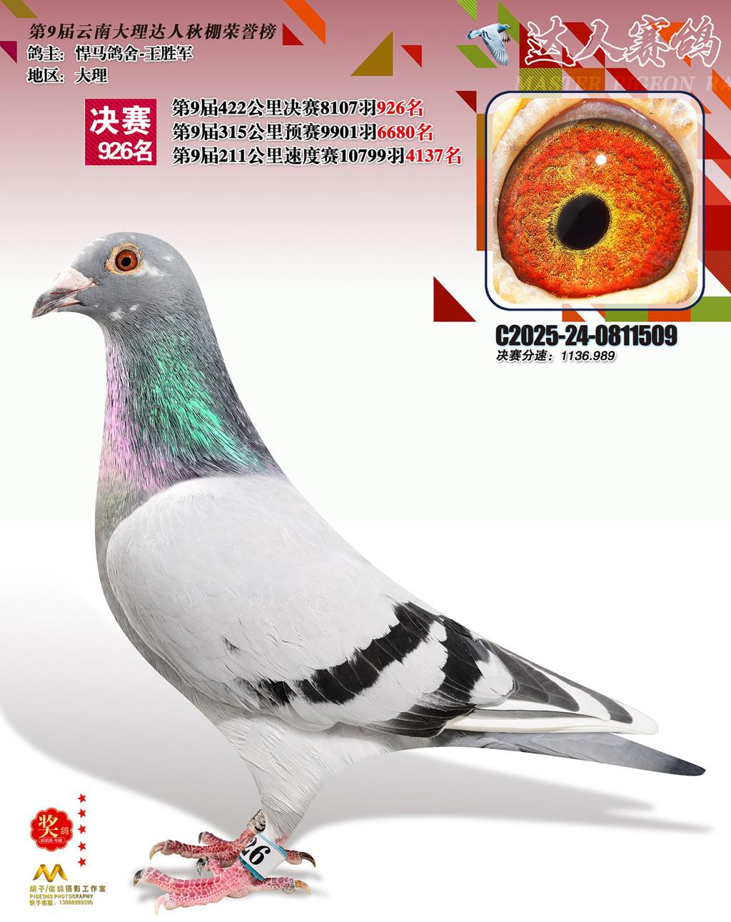 位置:云南大理巍山达人赛鸽中心2025获奖鸽展示\926名