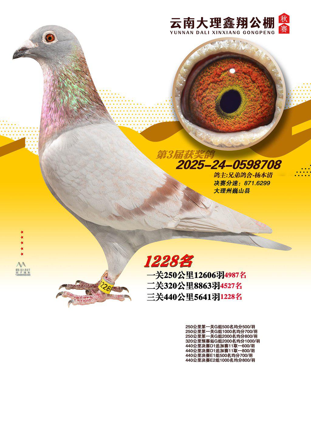 位置:云南大理鑫翔公棚2025获奖鸽展示\1228名