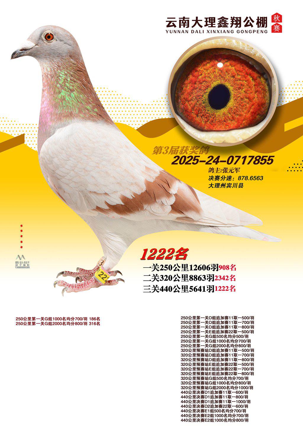 位置:云南大理鑫翔公棚2025获奖鸽展示\1222名