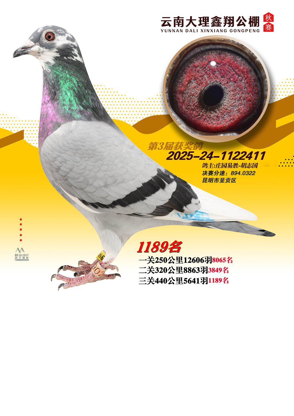 位置:云南大理鑫翔公棚2025获奖鸽展示\1189名