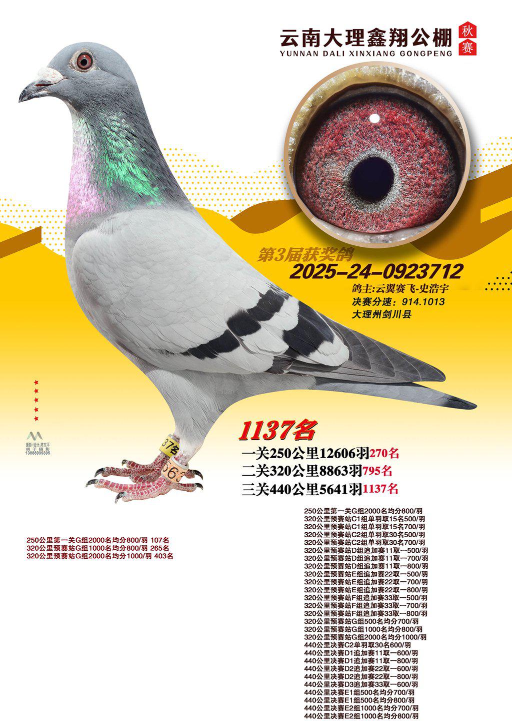 位置:云南大理鑫翔公棚2025获奖鸽展示\1137名