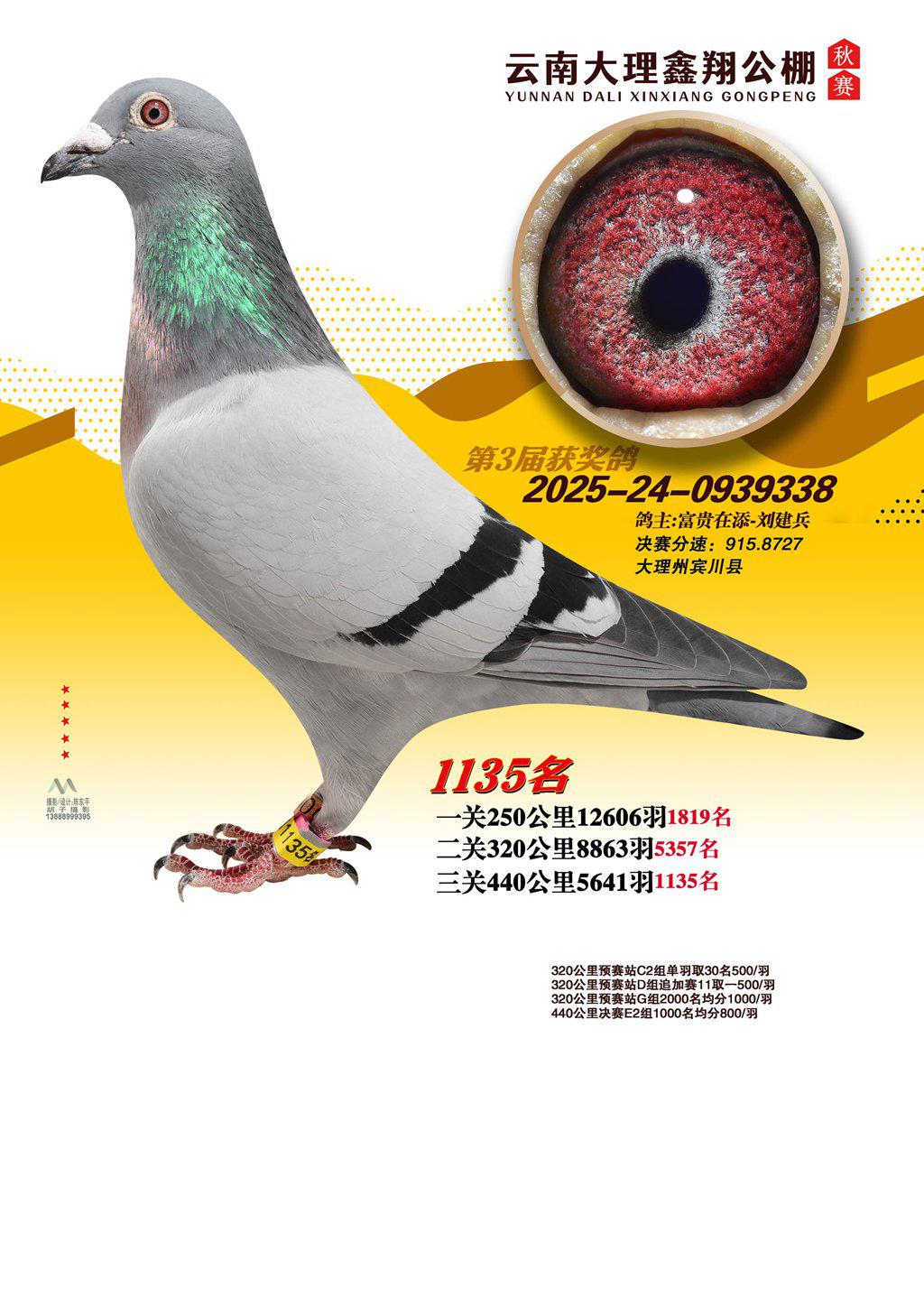 位置:云南大理鑫翔公棚2025获奖鸽展示\1135名