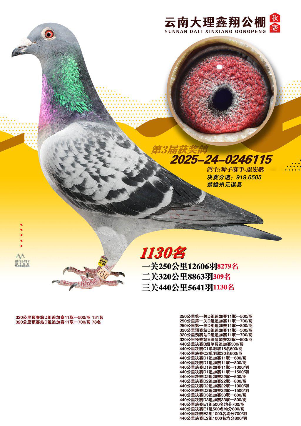 位置:云南大理鑫翔公棚2025获奖鸽展示\1130名