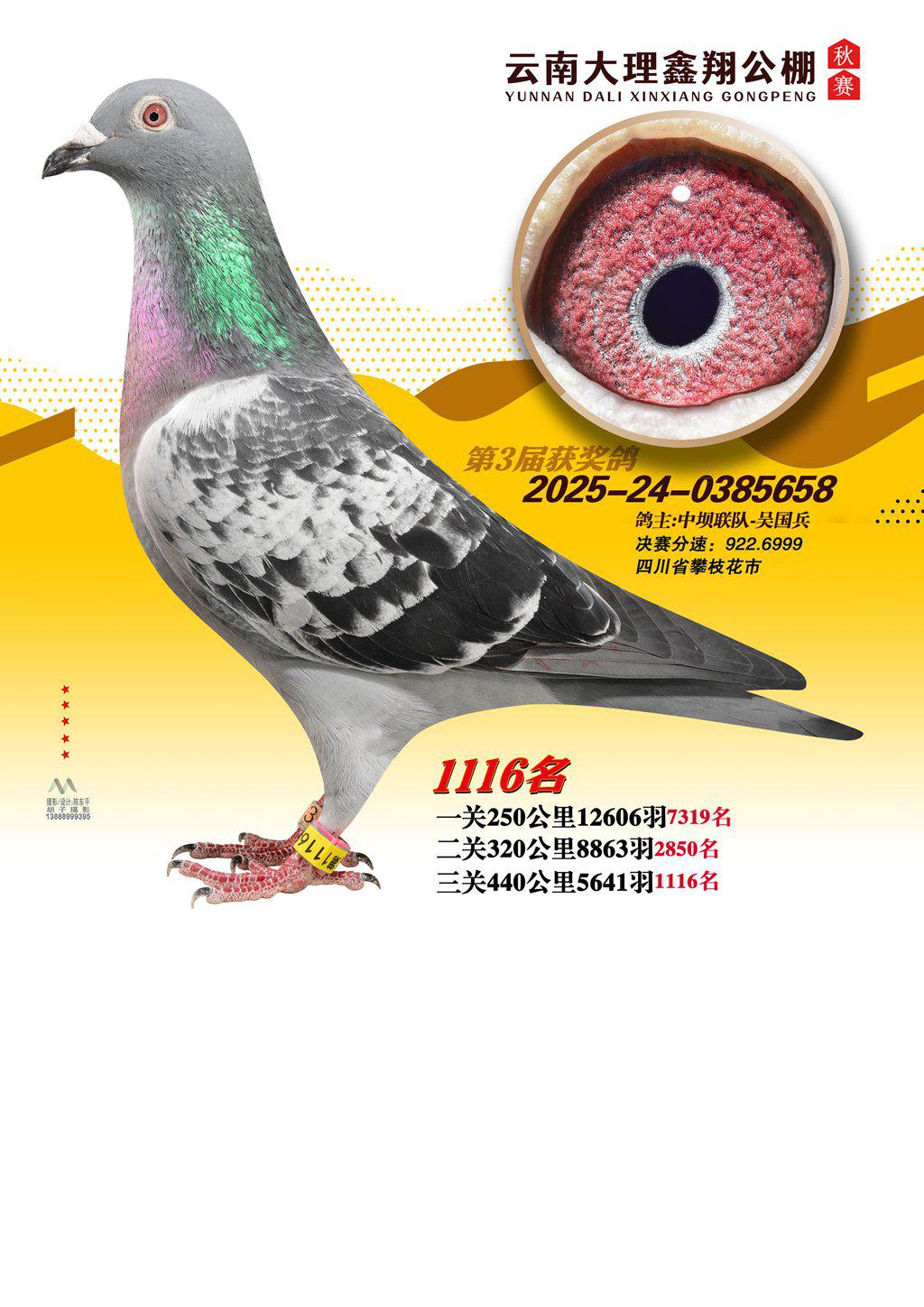 位置:云南大理鑫翔公棚2025获奖鸽展示\1116名