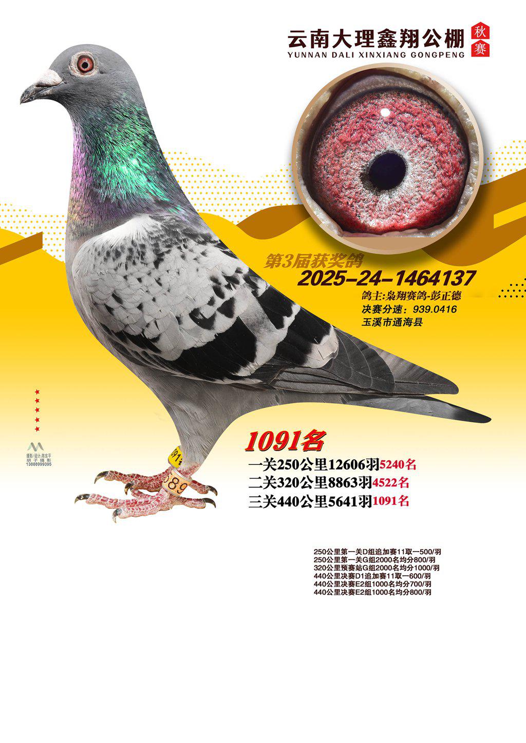 位置:云南大理鑫翔公棚2025获奖鸽展示\1091名