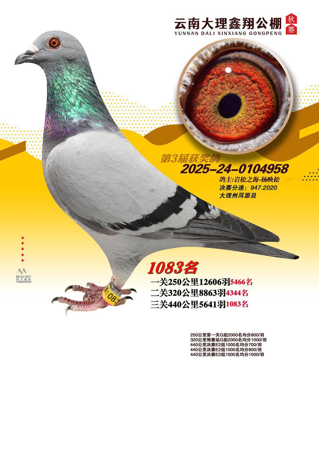 位置:云南大理鑫翔公棚2025获奖鸽展示\1083名
