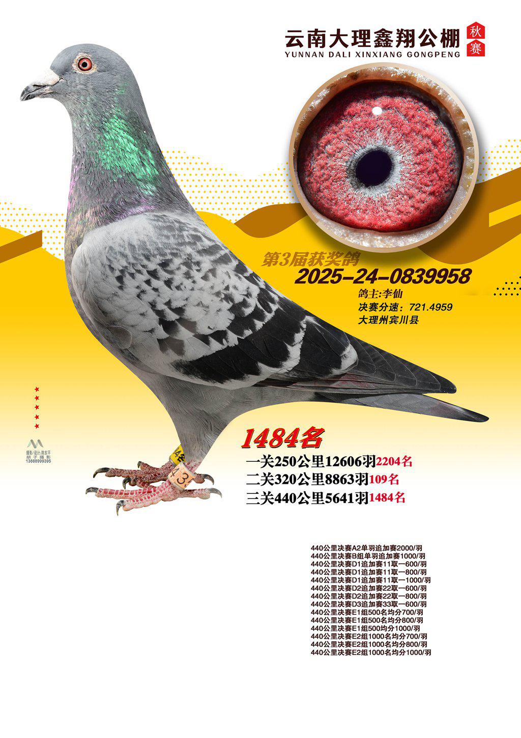 位置:云南大理鑫翔公棚2025获奖鸽展示\1484名