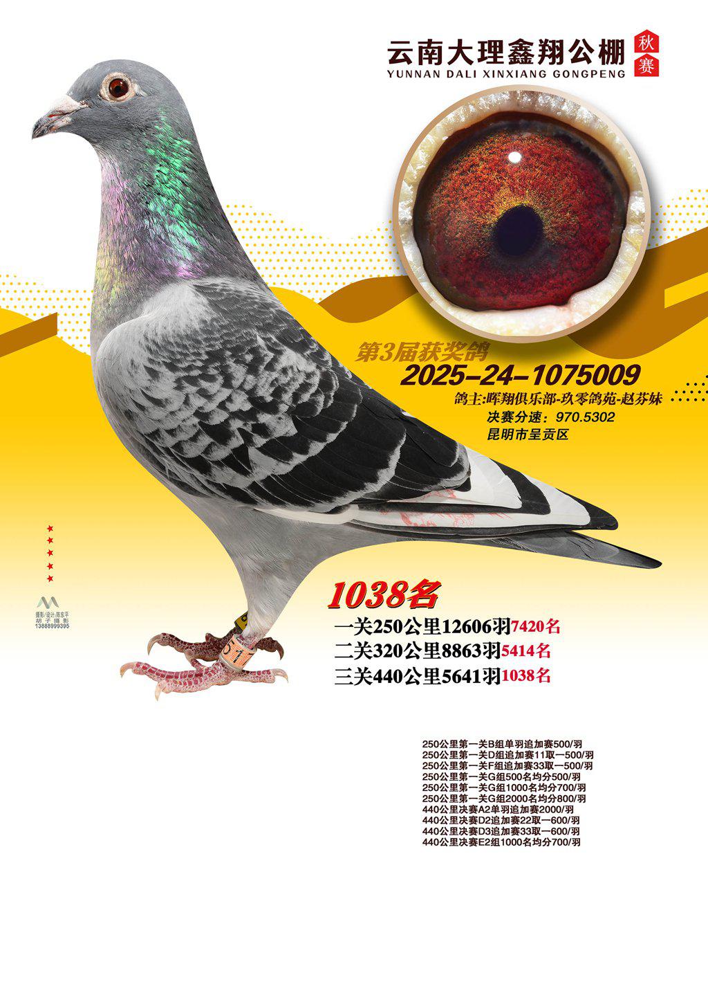 位置:云南大理鑫翔公棚2025获奖鸽展示\1038名