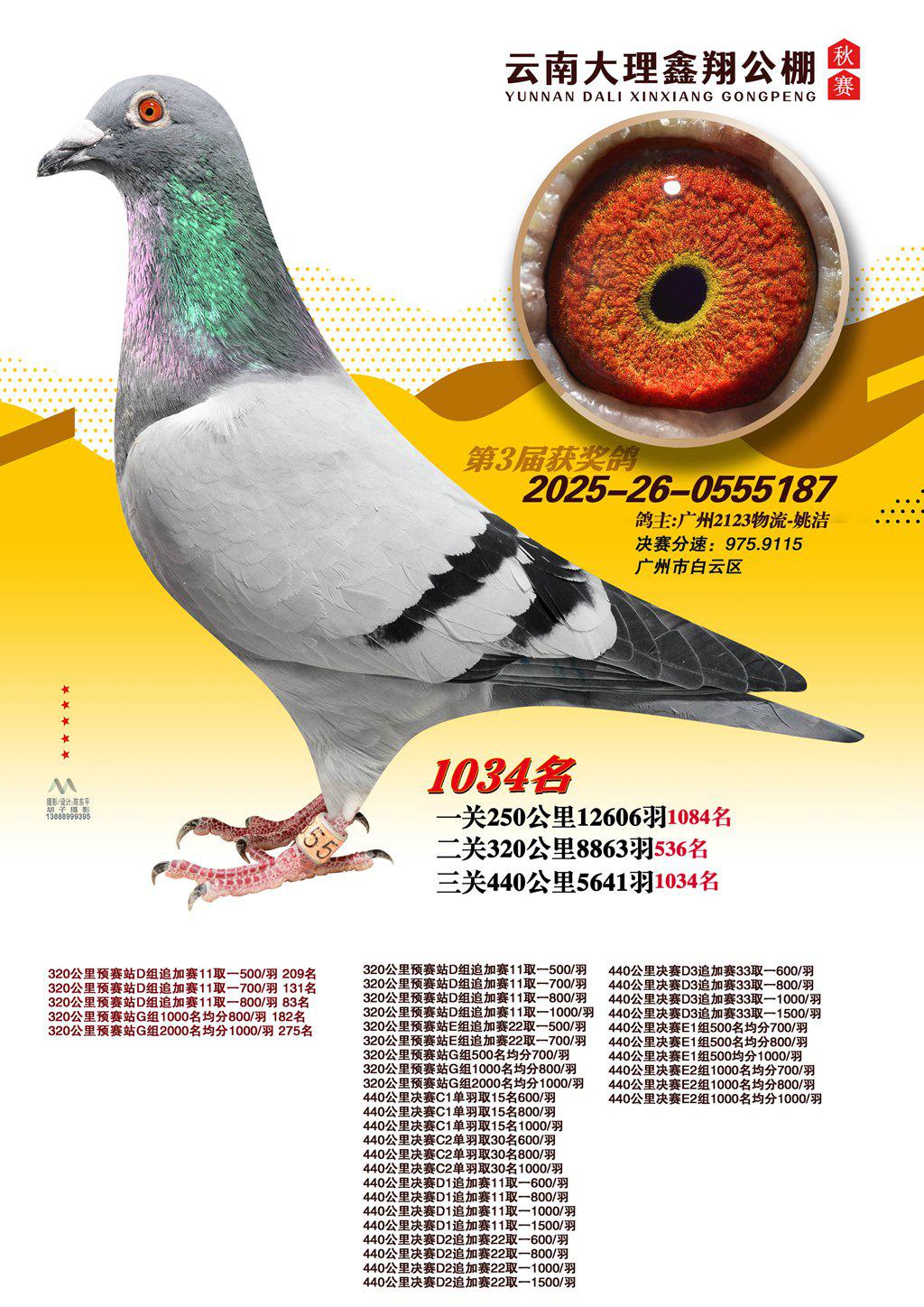 位置:云南大理鑫翔公棚2025获奖鸽展示\1034名