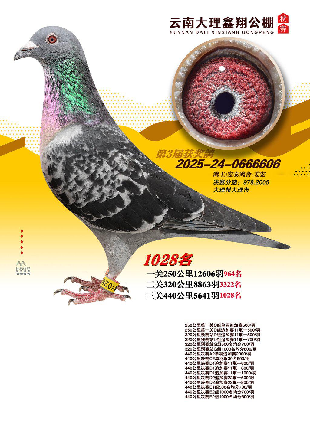 位置:云南大理鑫翔公棚2025获奖鸽展示\1028名
