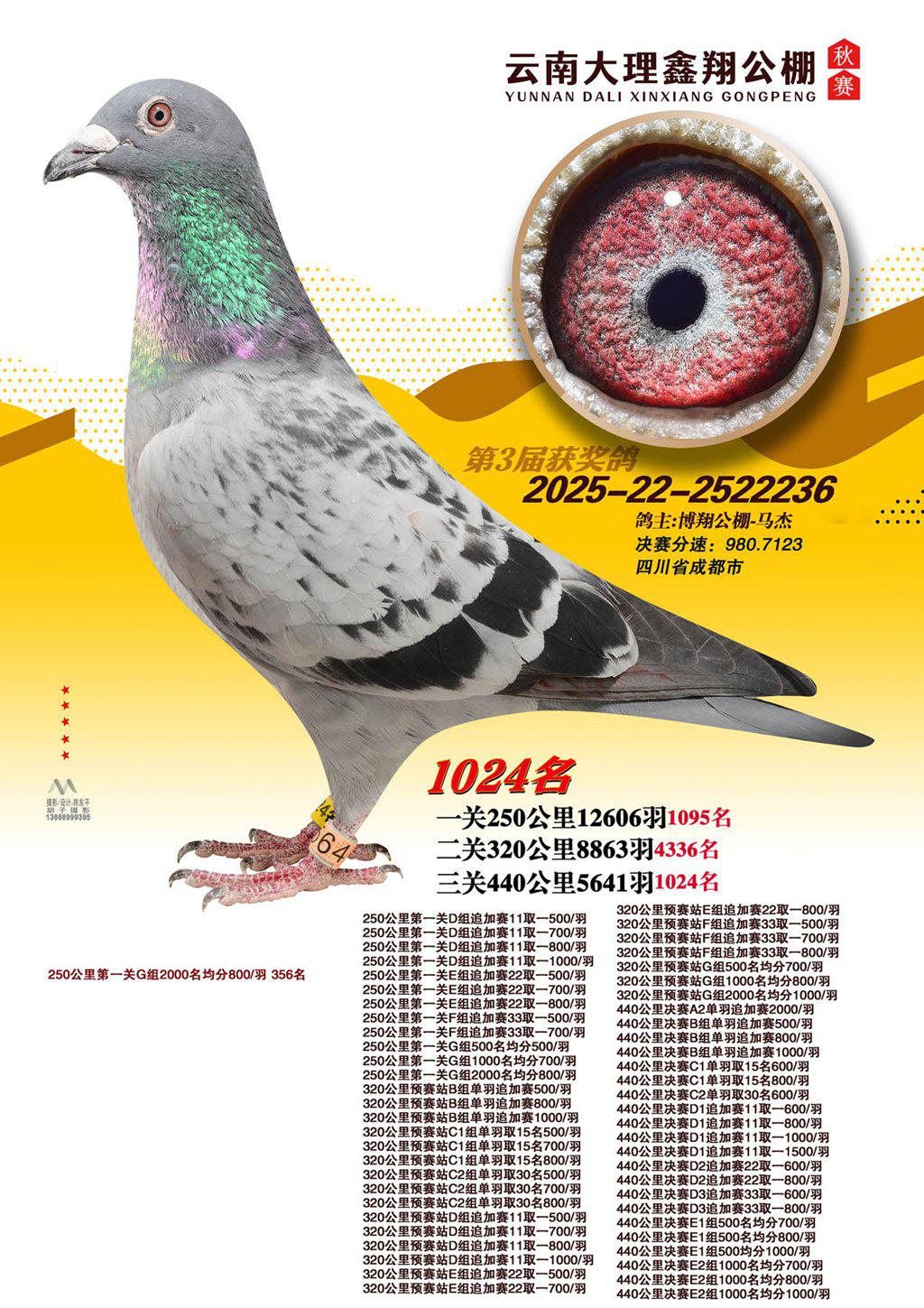 位置:云南大理鑫翔公棚2025获奖鸽展示\1024名