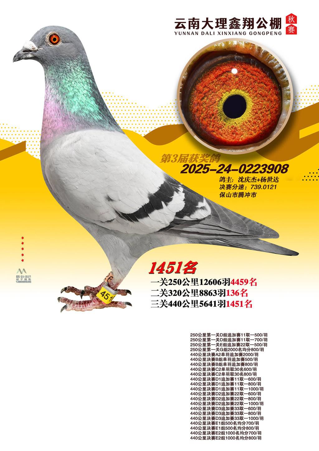 位置:云南大理鑫翔公棚2025获奖鸽展示\1451名