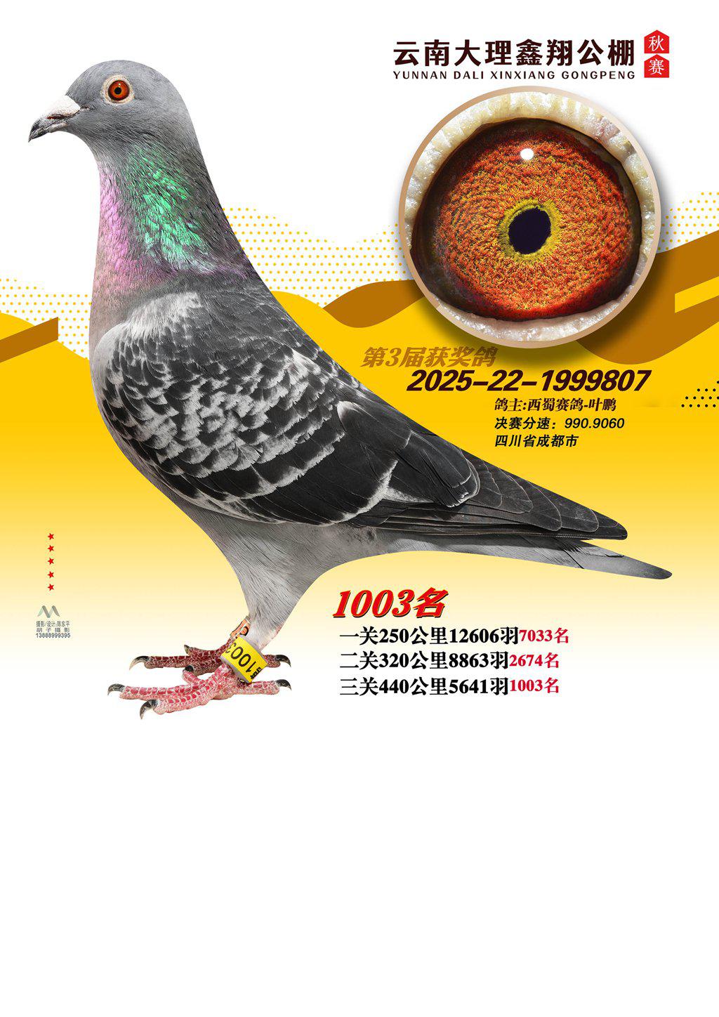 位置:云南大理鑫翔公棚2025获奖鸽展示\1003名