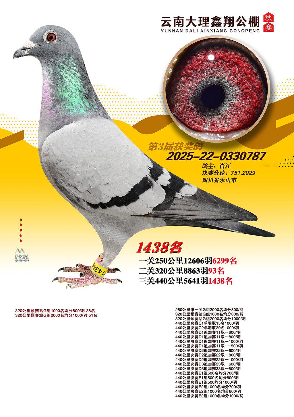 位置:云南大理鑫翔公棚2025获奖鸽展示\1438名