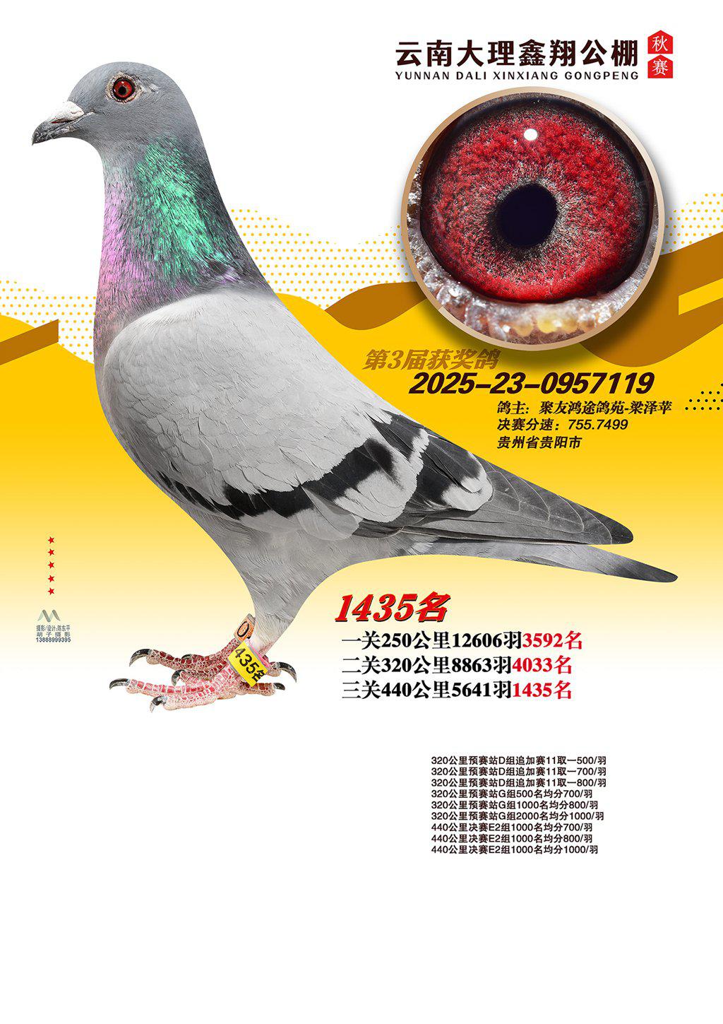 位置:云南大理鑫翔公棚2025获奖鸽展示\1435名