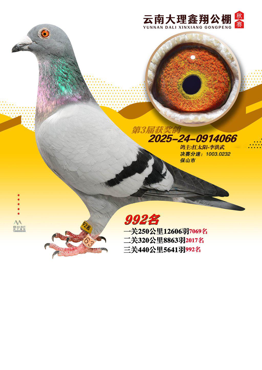 位置:云南大理鑫翔公棚2025获奖鸽展示\992名