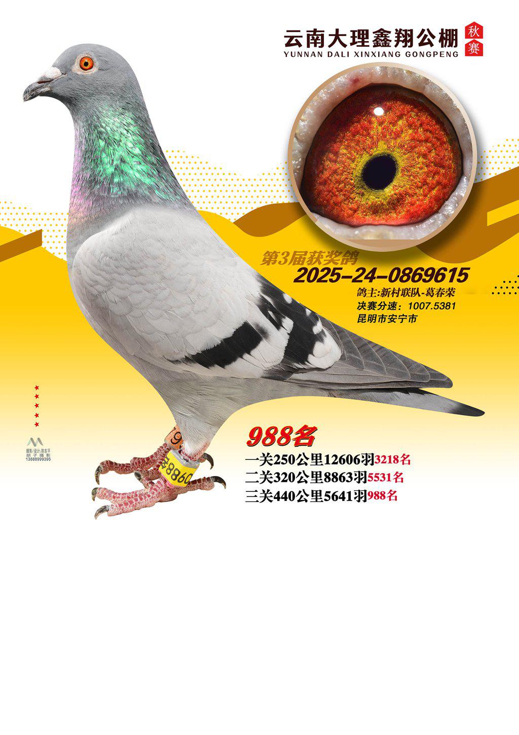 位置:云南大理鑫翔公棚2025获奖鸽展示\988名