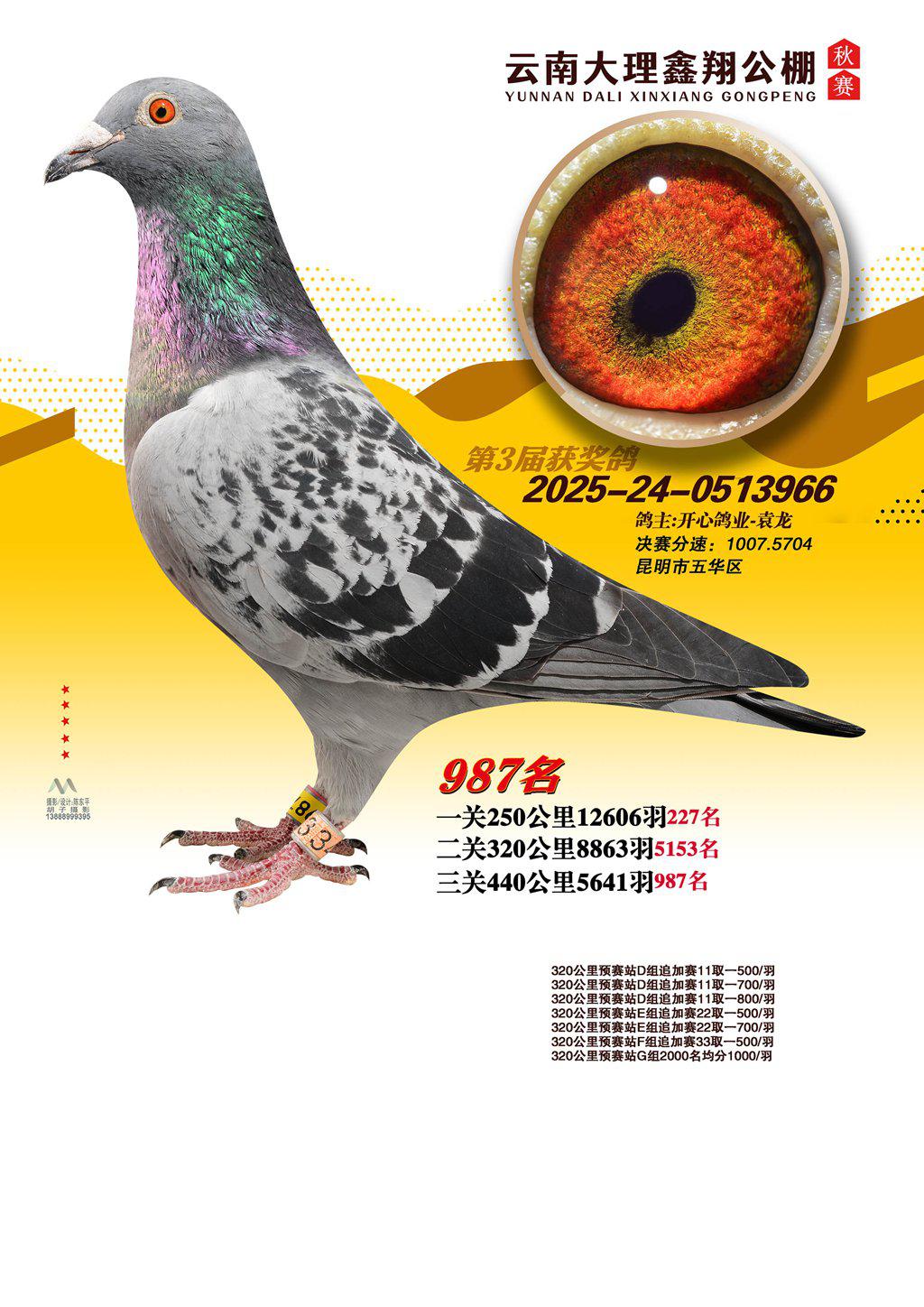 位置:云南大理鑫翔公棚2025获奖鸽展示\987名