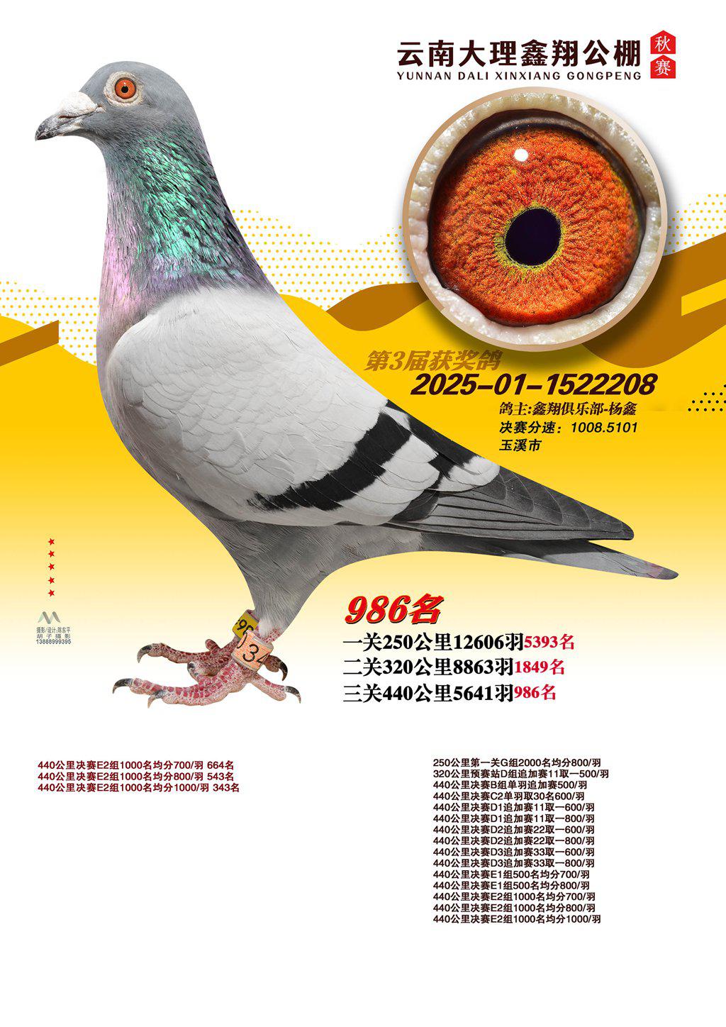 位置:云南大理鑫翔公棚2025获奖鸽展示\986名