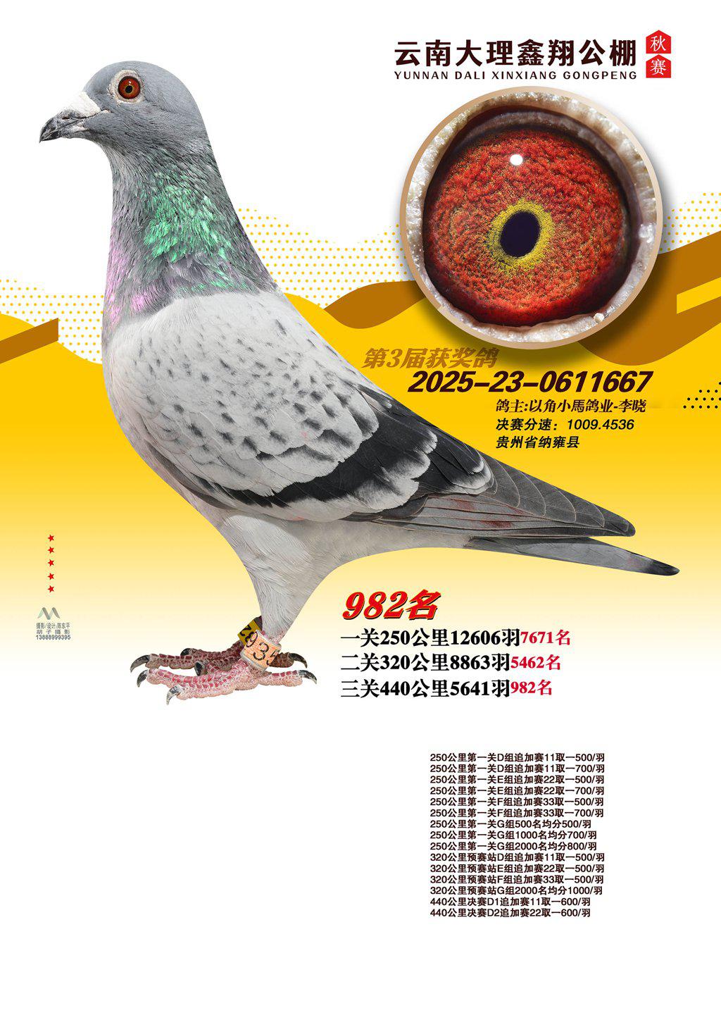 位置:云南大理鑫翔公棚2025获奖鸽展示\982名