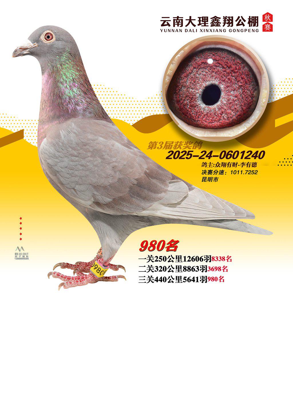 位置:云南大理鑫翔公棚2025获奖鸽展示\980名