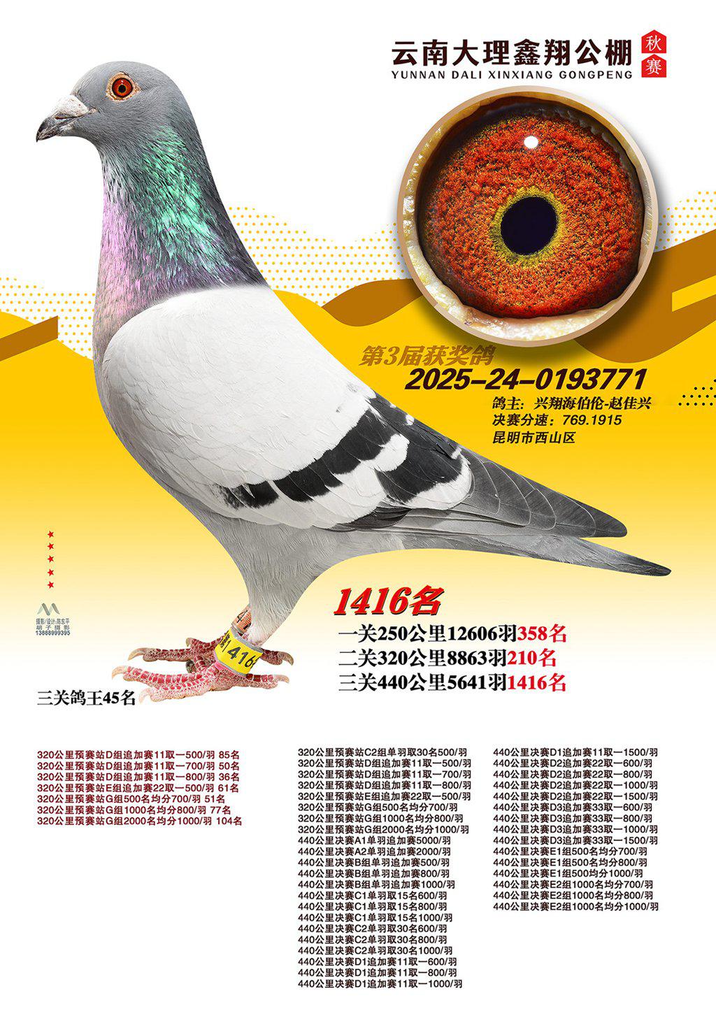 位置:云南大理鑫翔公棚2025获奖鸽展示\1416名