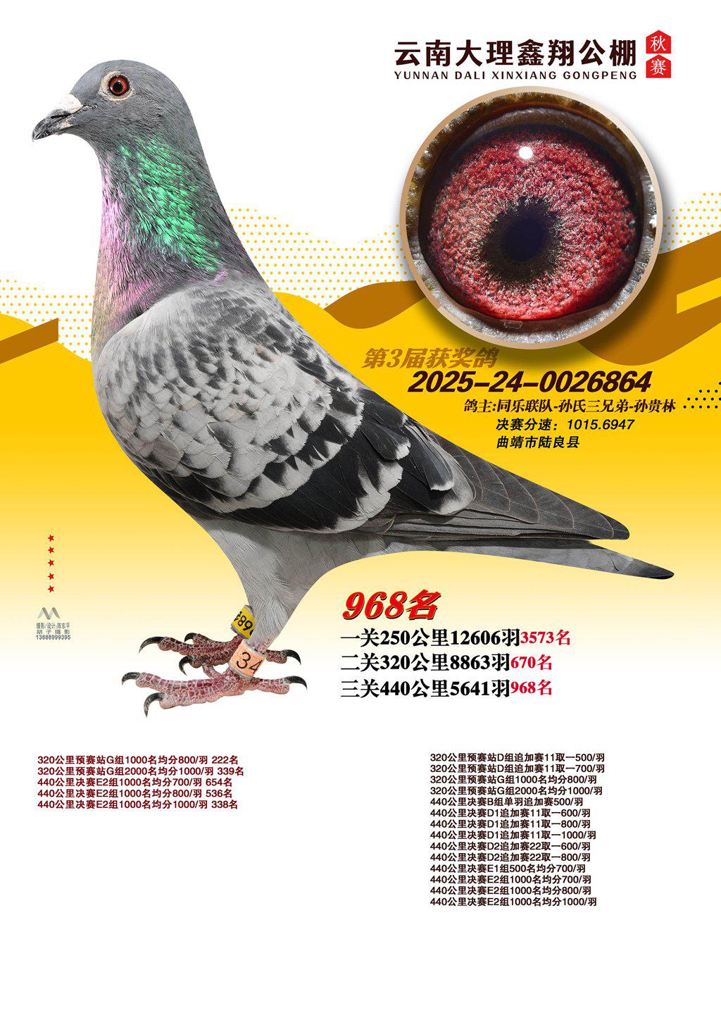位置:云南大理鑫翔公棚2025获奖鸽展示\968名
