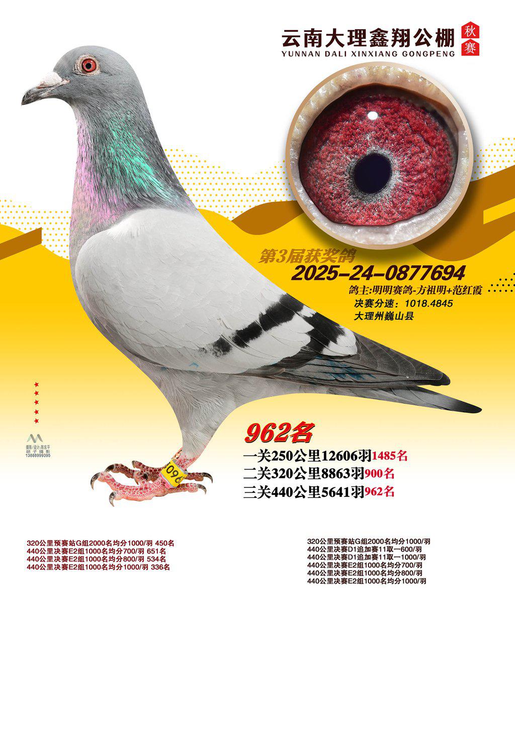 位置:云南大理鑫翔公棚2025获奖鸽展示\962名