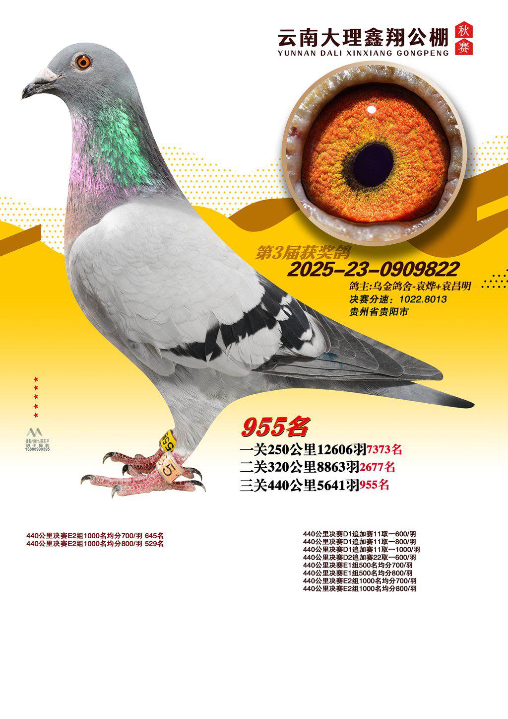 位置:云南大理鑫翔公棚2025获奖鸽展示\955名