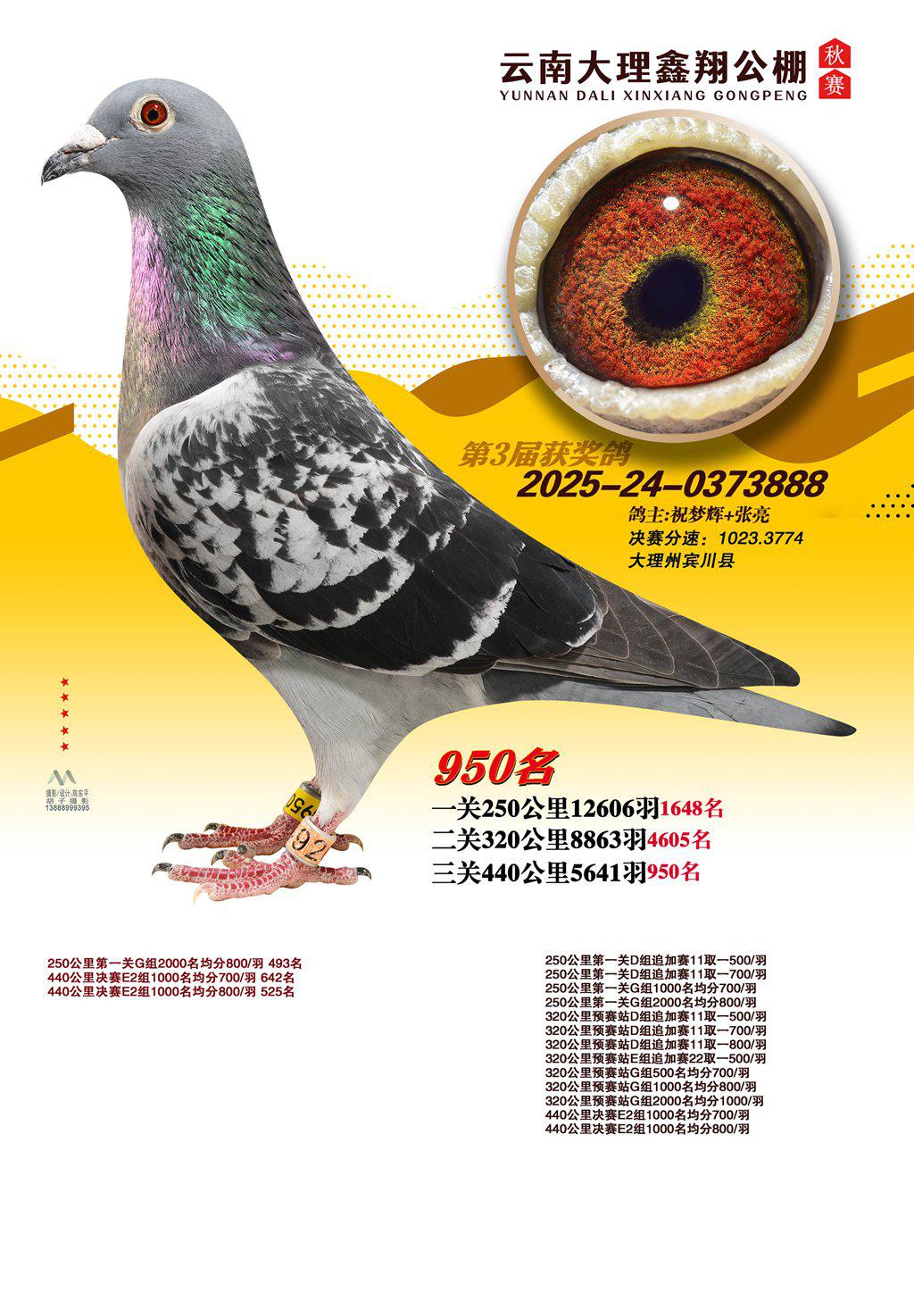 位置:云南大理鑫翔公棚2025获奖鸽展示\950名