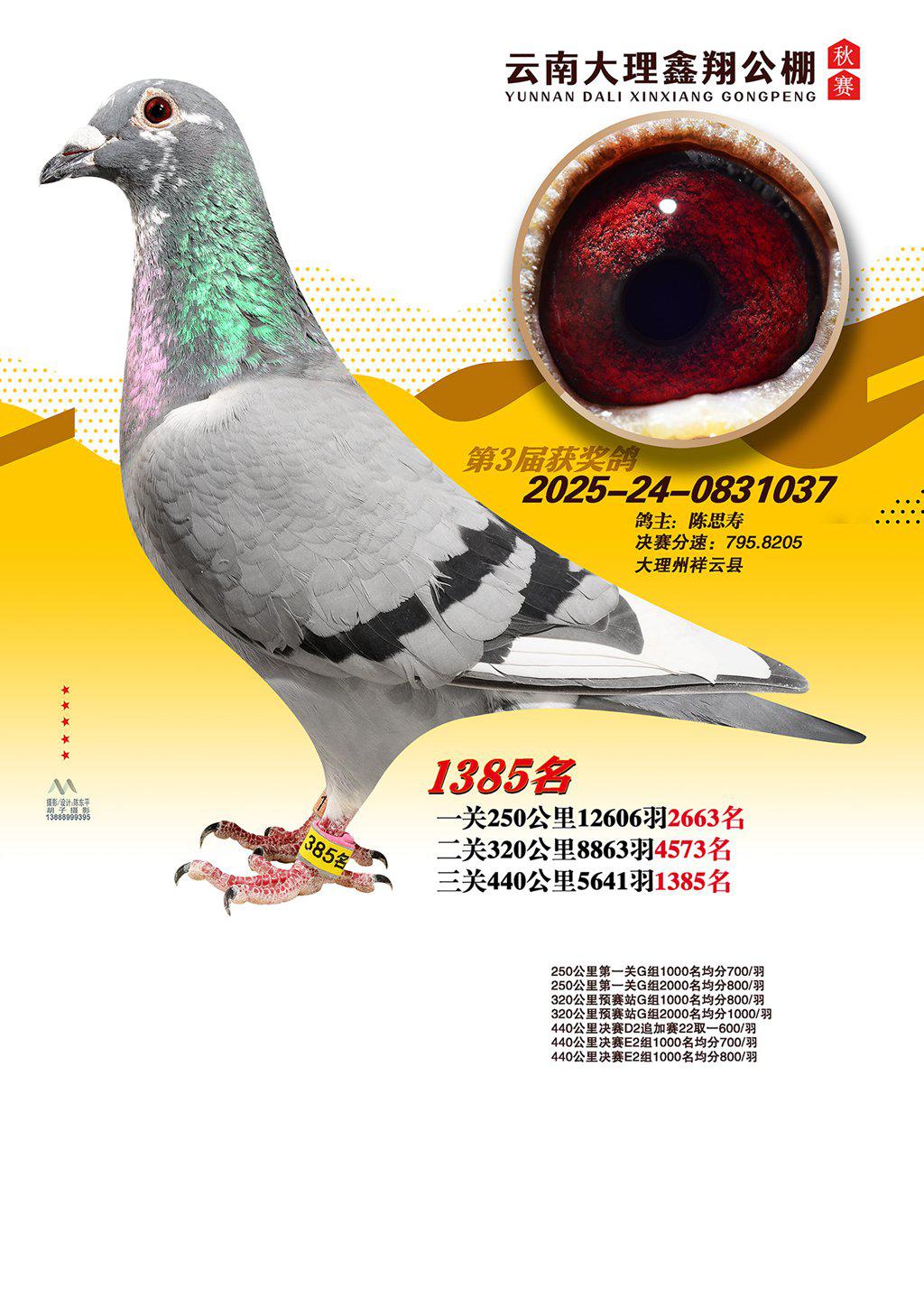 位置:云南大理鑫翔公棚2025获奖鸽展示\1385名