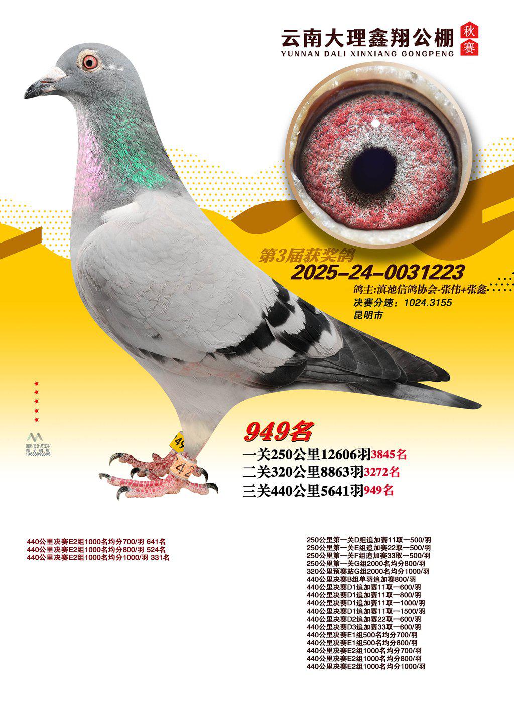 位置:云南大理鑫翔公棚2025获奖鸽展示\949名