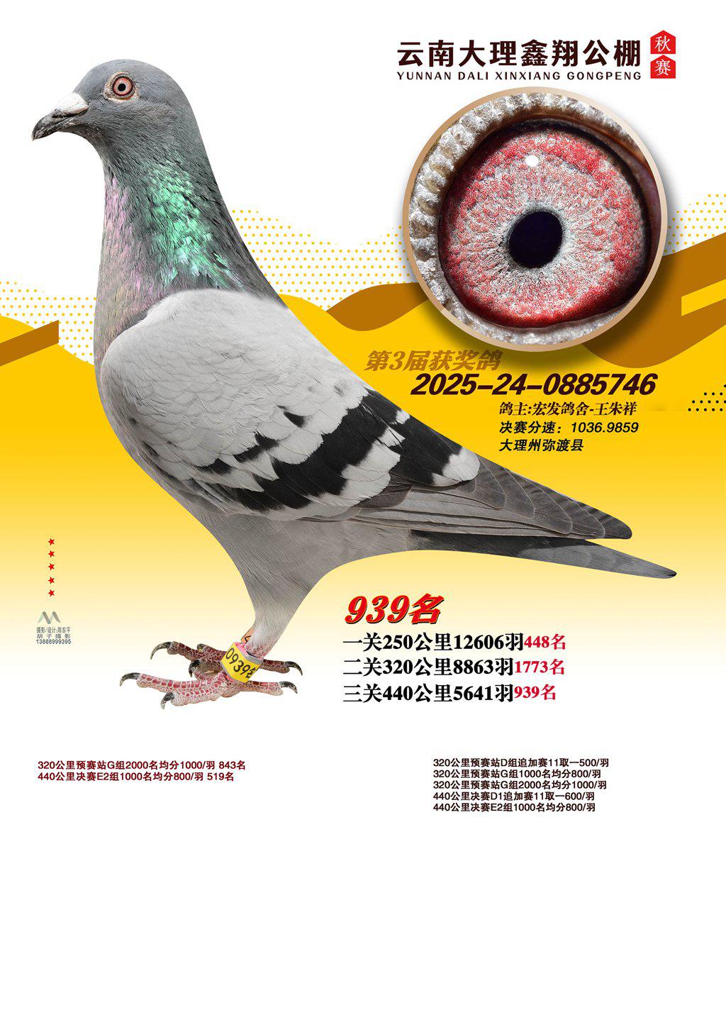 位置:云南大理鑫翔公棚2025获奖鸽展示\939名