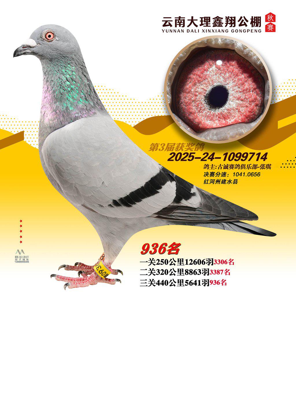 位置:云南大理鑫翔公棚2025获奖鸽展示\936名